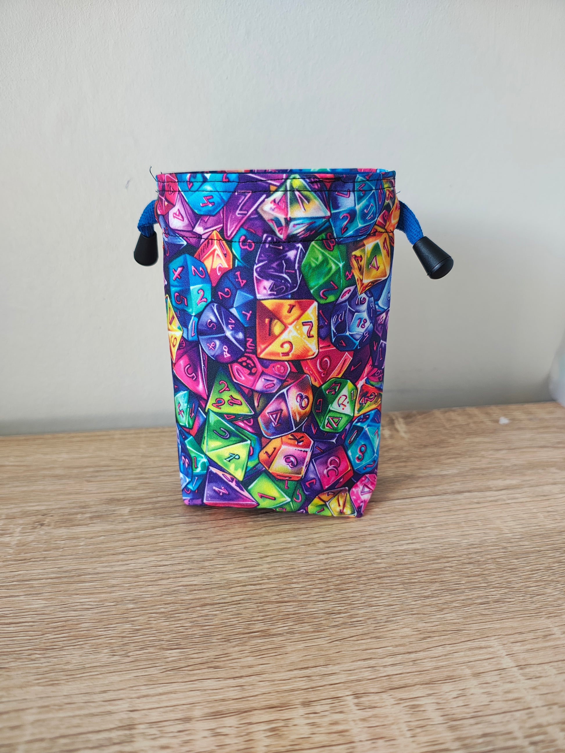 Enhance your gaming experience with our All Coloured Dice Bag! Made with durable fabric and a convenient drawcord, this bag keeps all your dice in one place. Its eye-catching design ensures you'll never lose your bag at game night. Hand wash as end stoppers may damage machine.